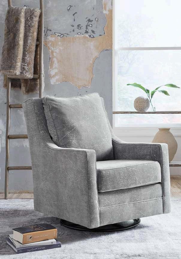 la silla giratoria redonda Cambri en un tono neutro de nieve le invita a ampliar su estilo de una manera sencilla y elegante. Ya sea que su estética sea moderna o urbana, esta elegante silla giratoria seguramente se verá y se sentirá como en casa. Esta silla de moda incluye almohadas de diseñador para darle un brillante toque de color y textura.
