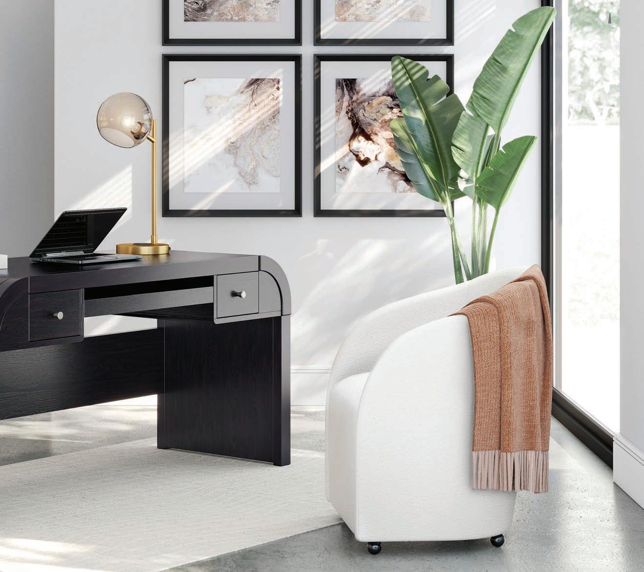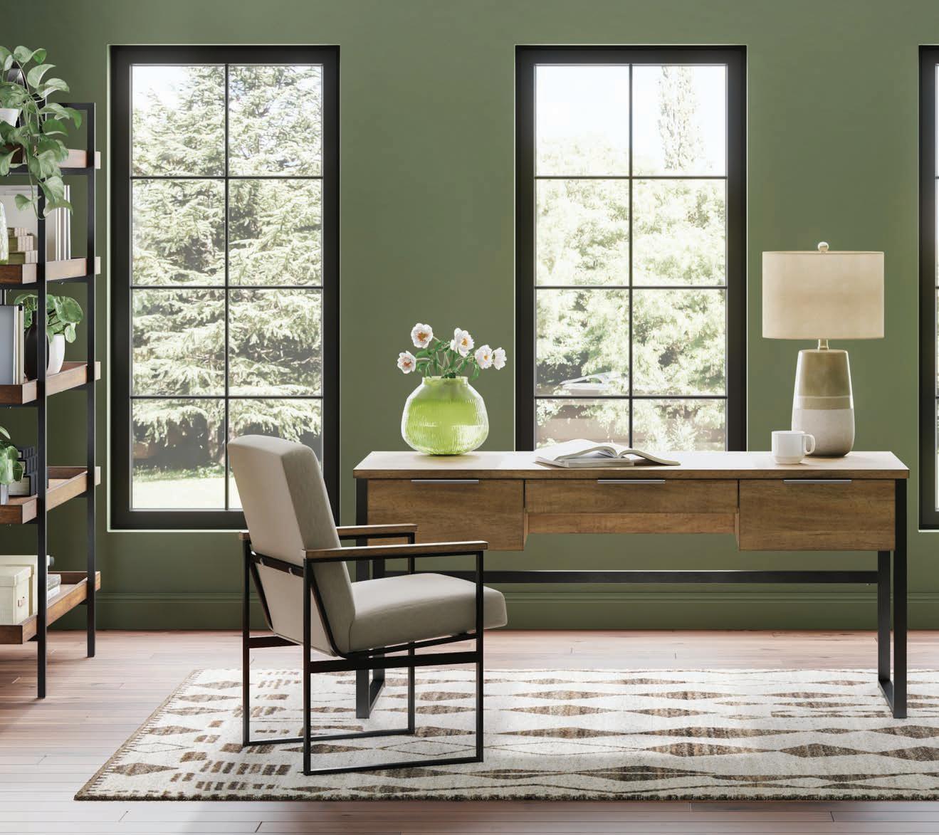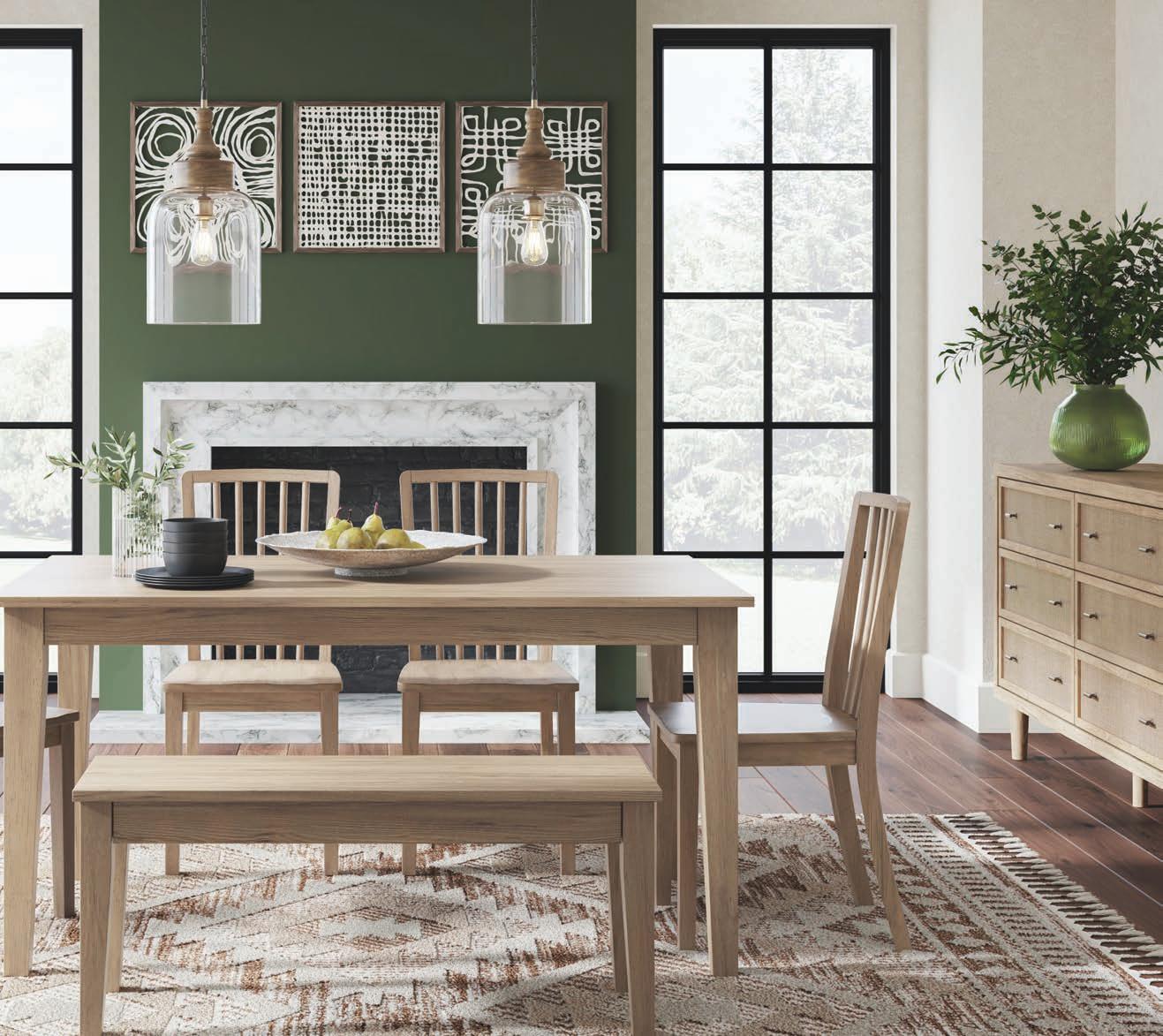 Breathe deeply and find your sanctuary in this modern organic haven. Earthy elements abound, while a platform bed adorned in soft linens serves as the focal point. The dresser and nightstands feature cane accent details, while the woven textures of the bedside lamps add an artisan touch. The living room evokes a laid-back eclectic feel with natural textures and organic shapes, creating a space that feels both calming and refined. When it’s time to entertain, the dining room is set with its farmhouse-inspired table and bench, accented by a rug with intricate patterns and lush greenery. For moments that require focus and flow, the office inspires with its clean lines and natural elements. Here, in this intentional space, peace and reconnection are yours. Namaste.