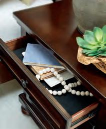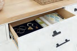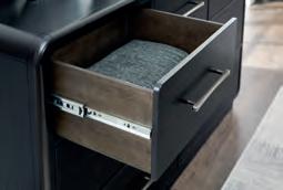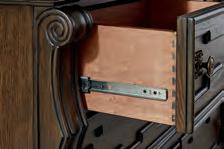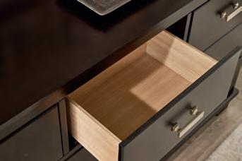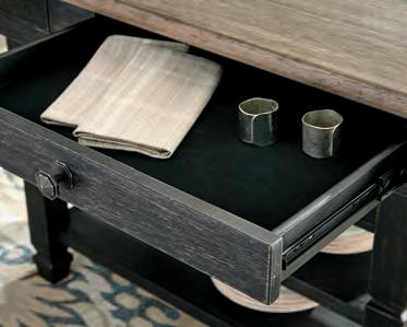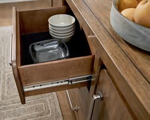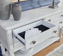 The Dining Buffet Top is fully finished with matching ash swirl veneer border and includes 3 cabinets with an adjustable shelf in each and 3 fully finished storage drawers with black felt bottoms