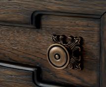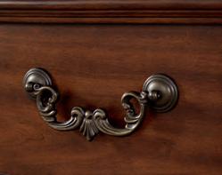 Features a choice blend of materials is accented by detailed ornamental appliques large scaled decorative pilasters and ornate cabriole legs