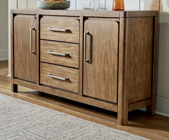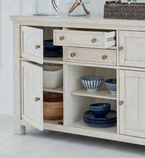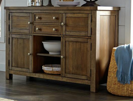 The Dining Server features two doors with shelf and three spacious drawers to conveniently store your dining room accessories