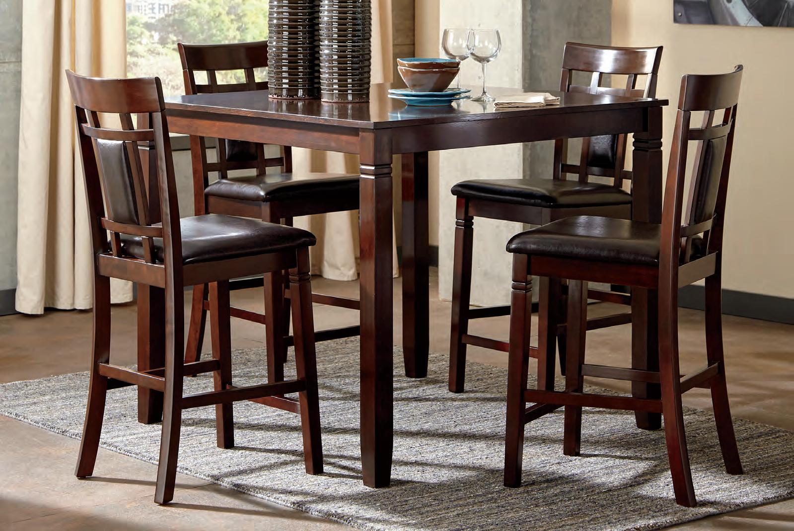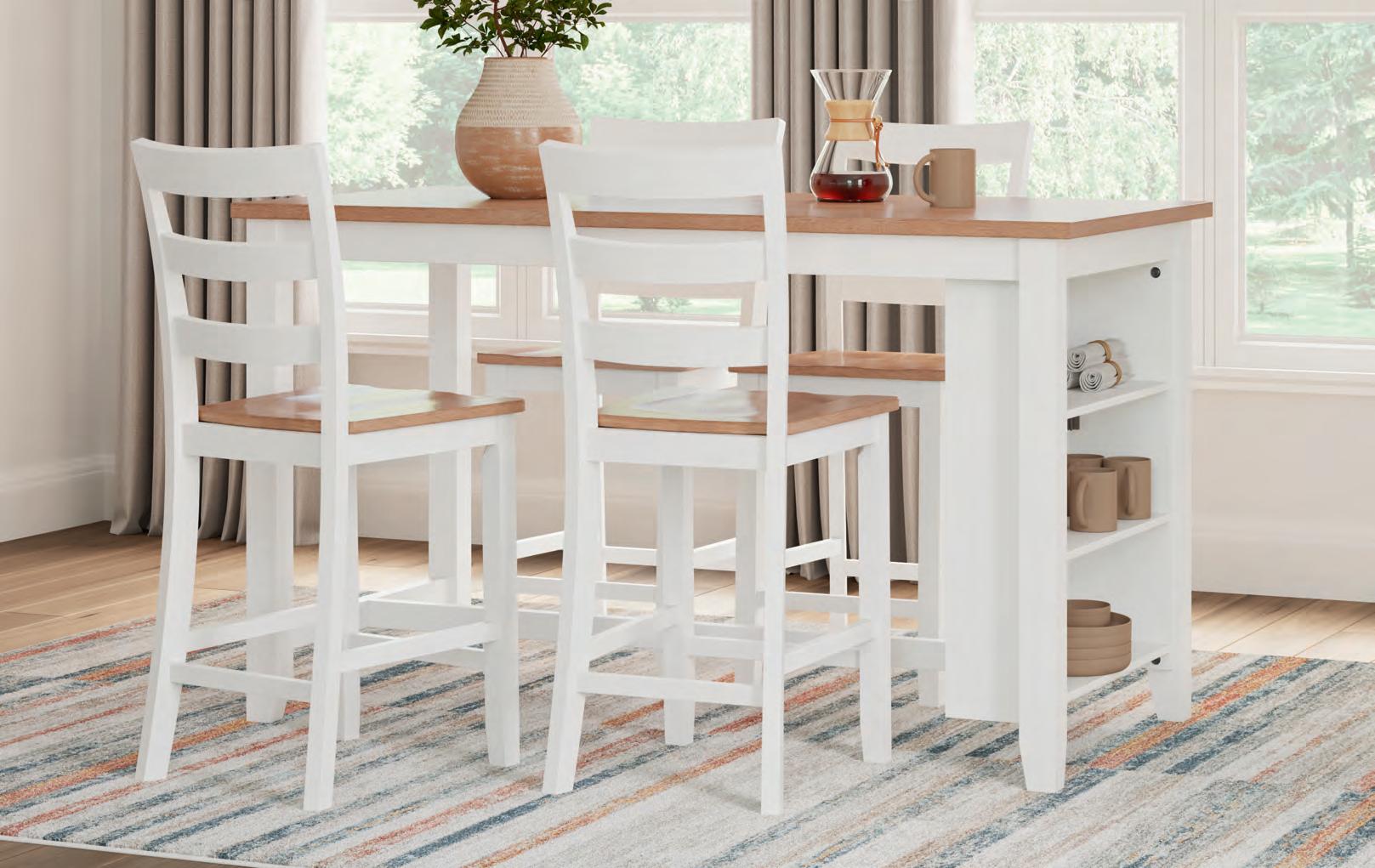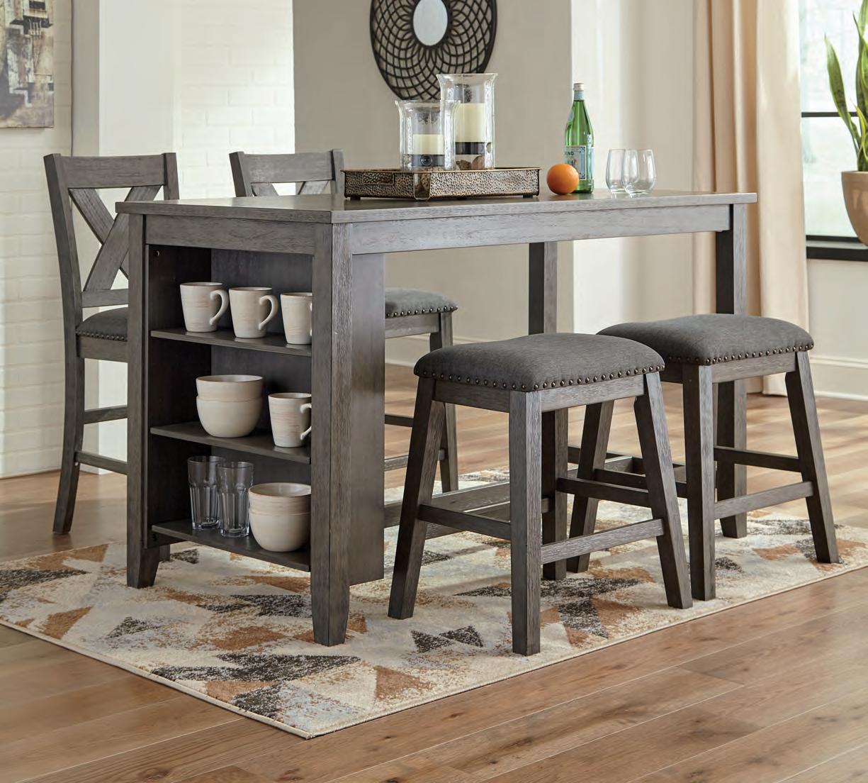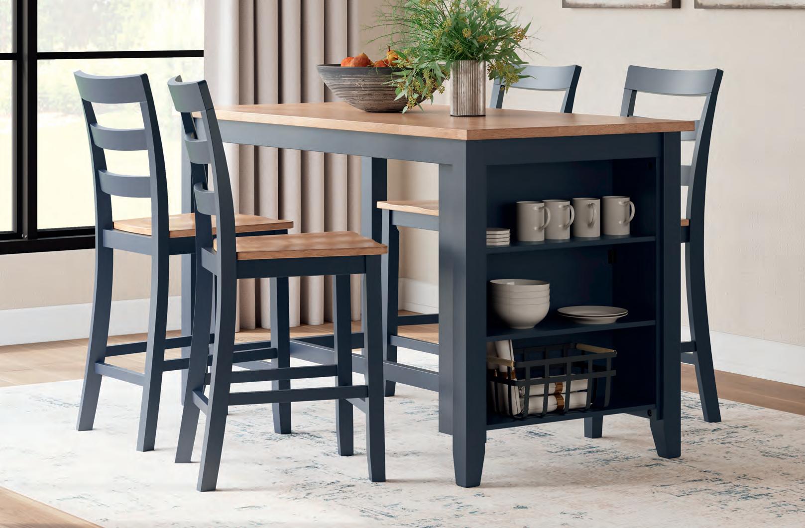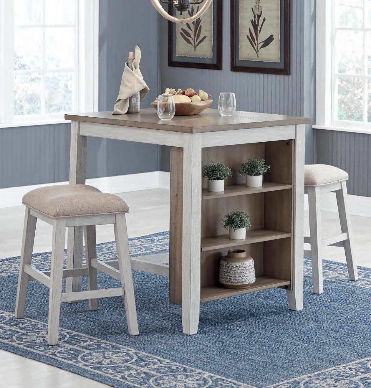 The Rectangular Counter Table features a thick edge table top and stylish double pedestal base along with an integrated wine rack