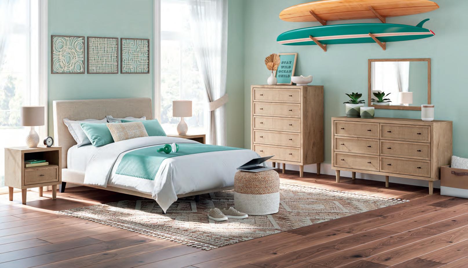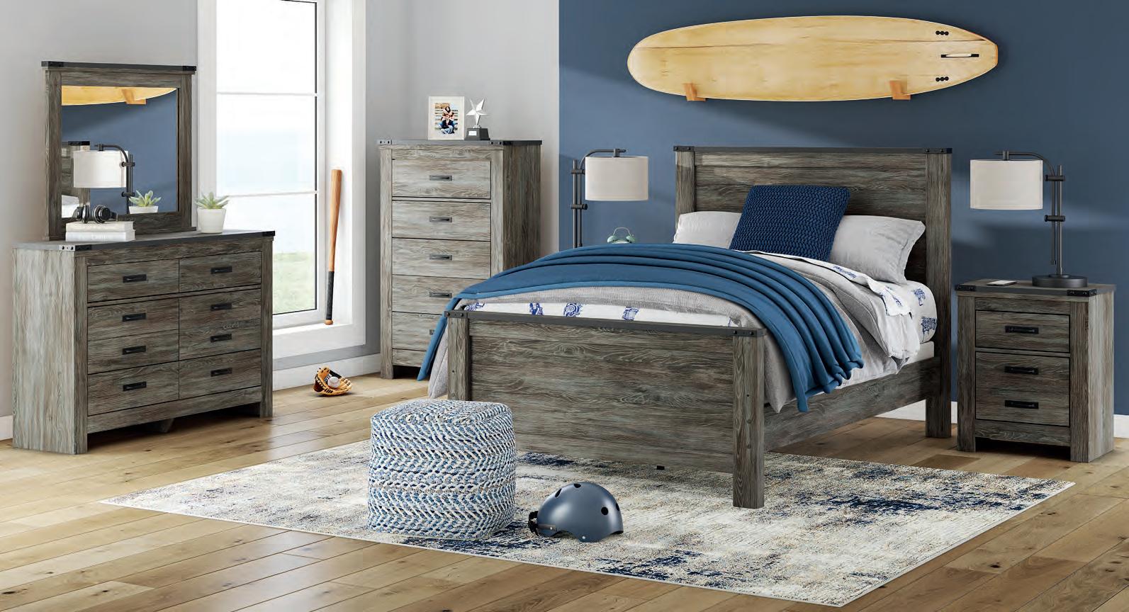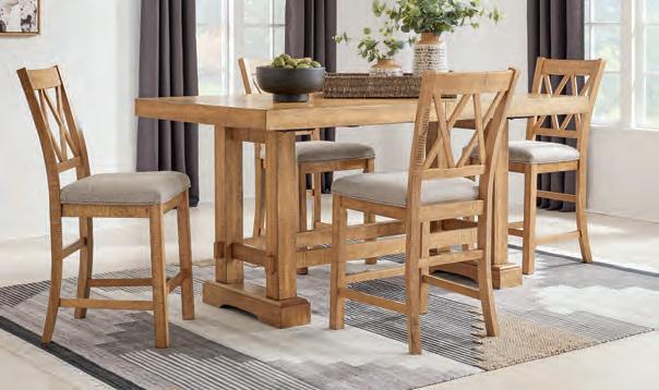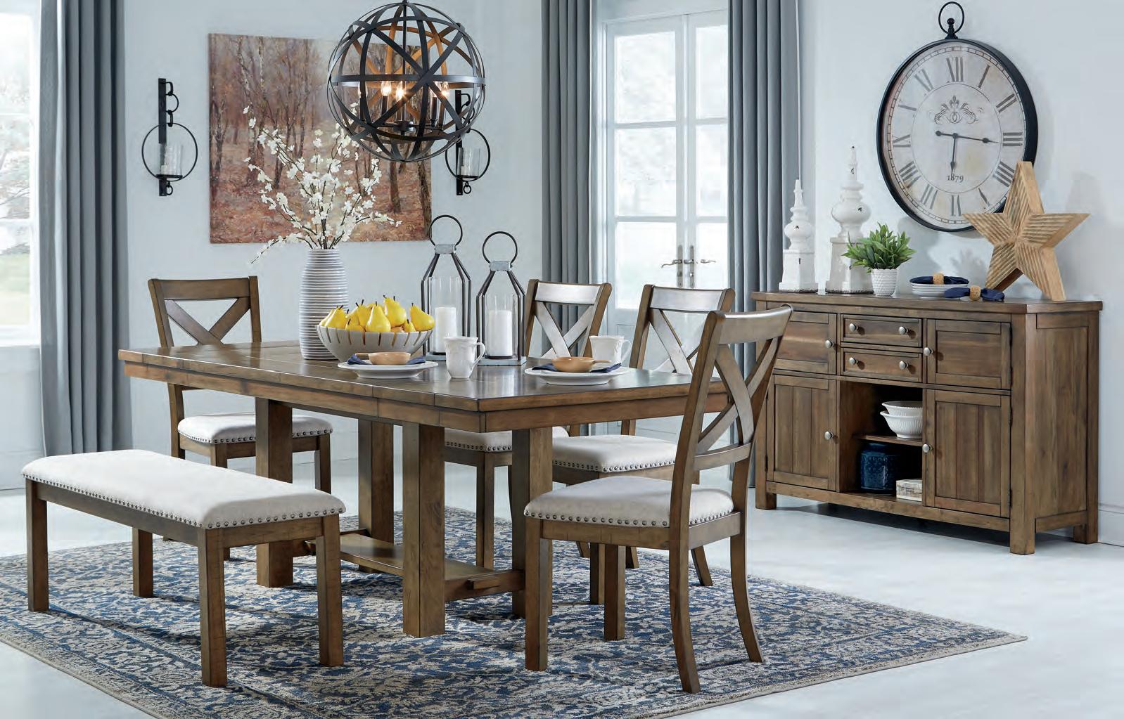 Collection design is inspired by casual farmhouse architectural elements such as post and beam framing and board and baton accents