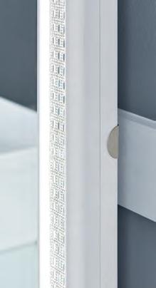 The ornately shaped China Hutch features decorative beveled glass windows, a mirrored back and 2 interior glass shelves along with an LED light for display