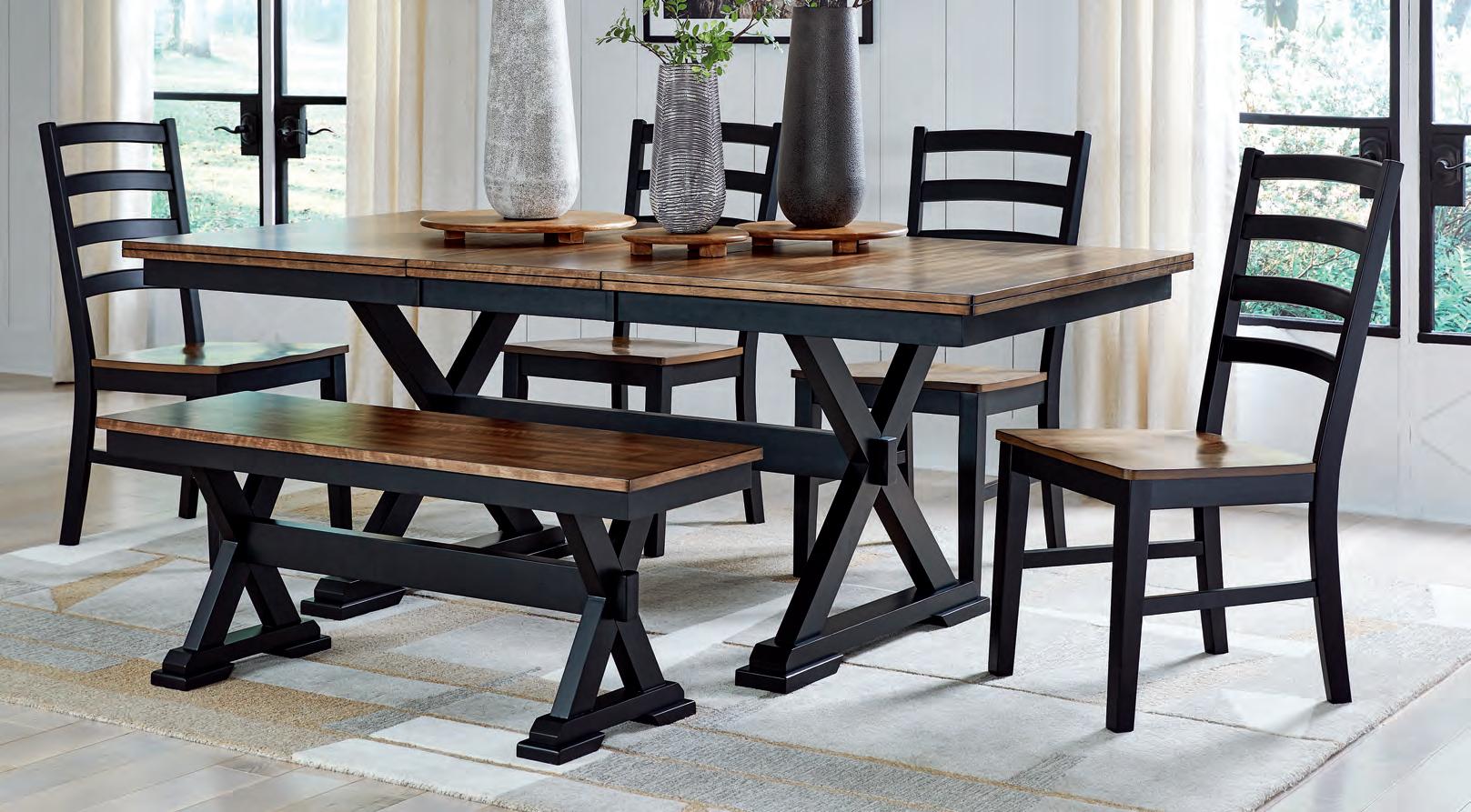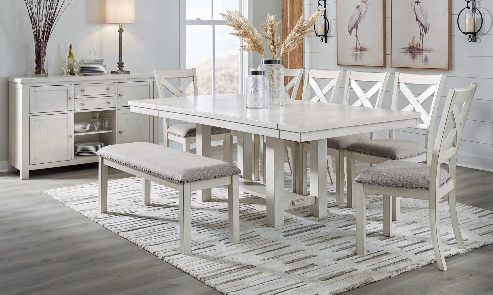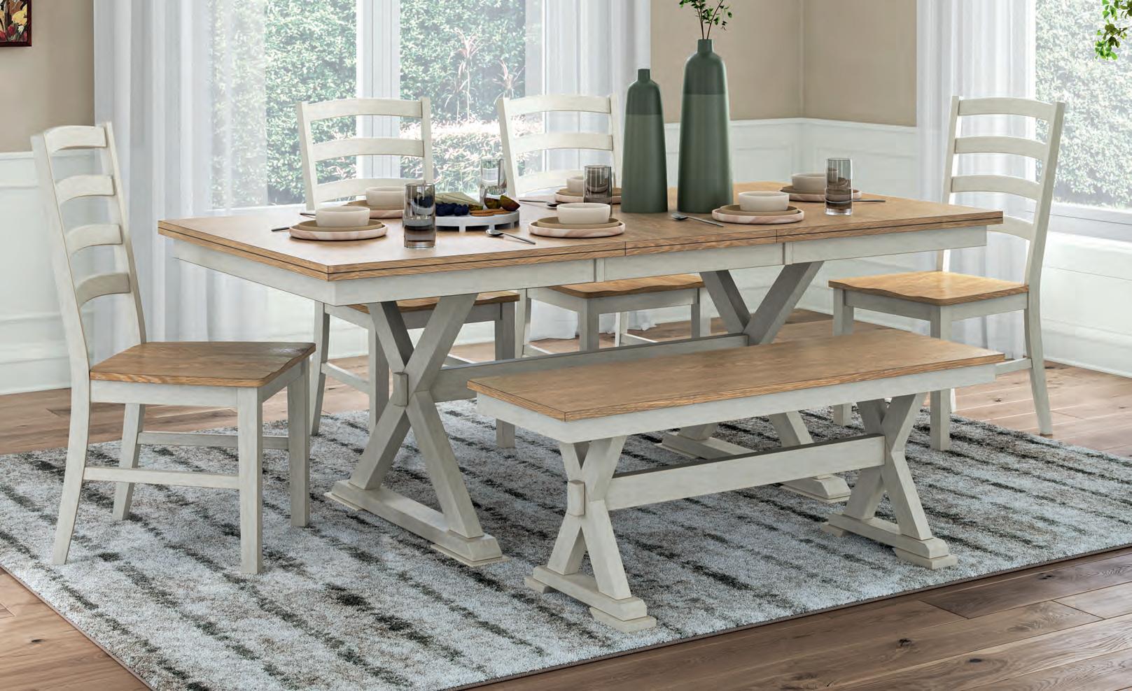 The Extension Table features a stylish trestle base along with a 24" removable leaf