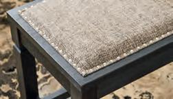 The cushioned seats are covered with a soft polyester fabric in a neutral colored, high-low texture