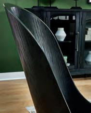 The Dining Chair features a broad curved back rest made with hickory veneer and hardwood solids