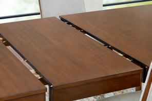 The Extension Table features a thick edge table top and stylish double pedestal base