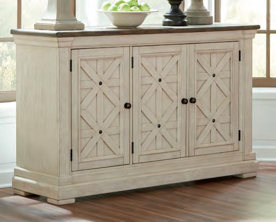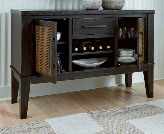 The Dining Server offers large storage capacity with two double door cabinets, each with an an adjustable shelf inside