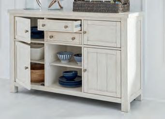 The Dining Server features two doors with shelf and three spacious drawers to conveniently store your dining room accessories