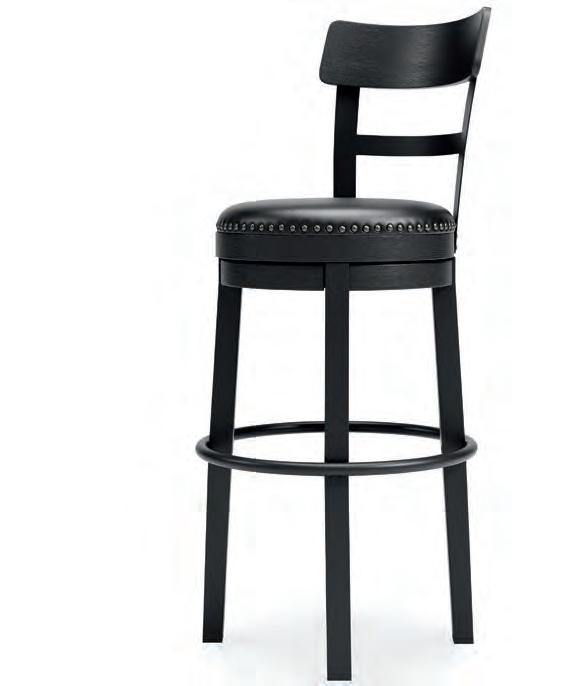 Bar Stools made with hardwood frames and are upholstered in a black faux leather