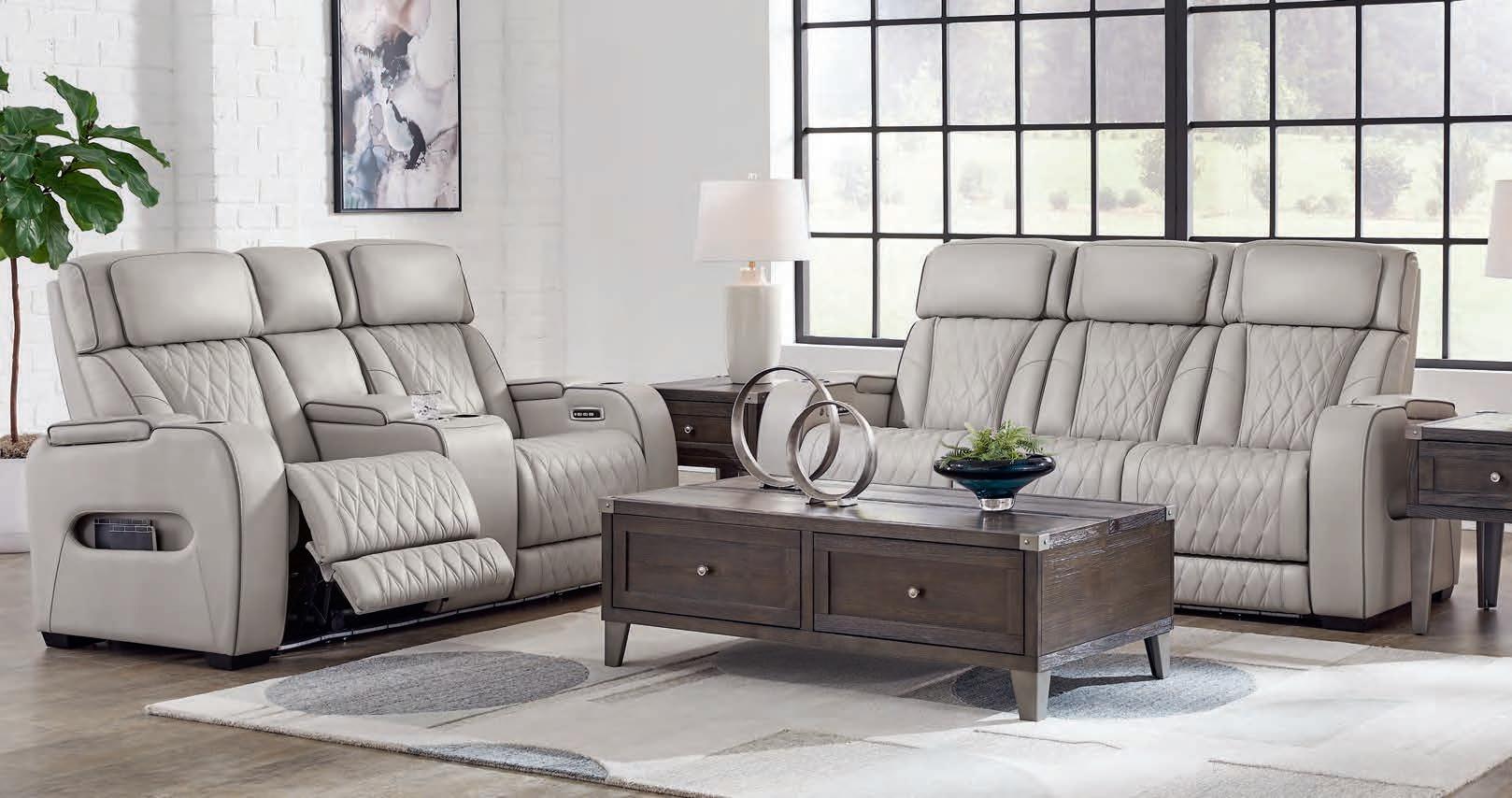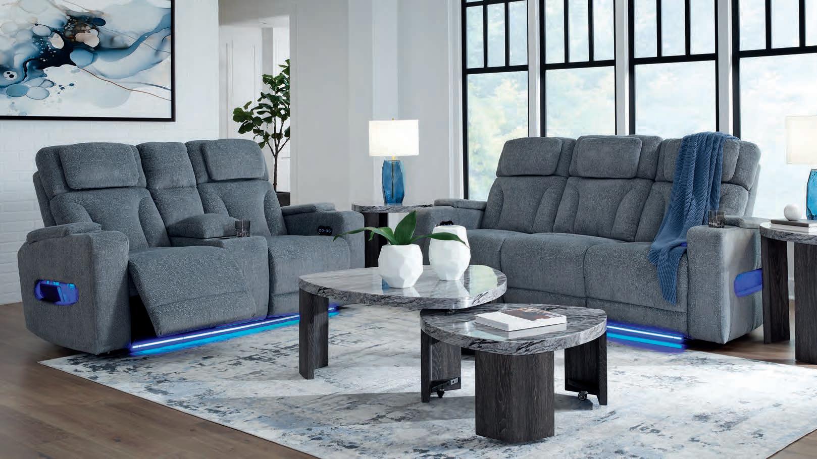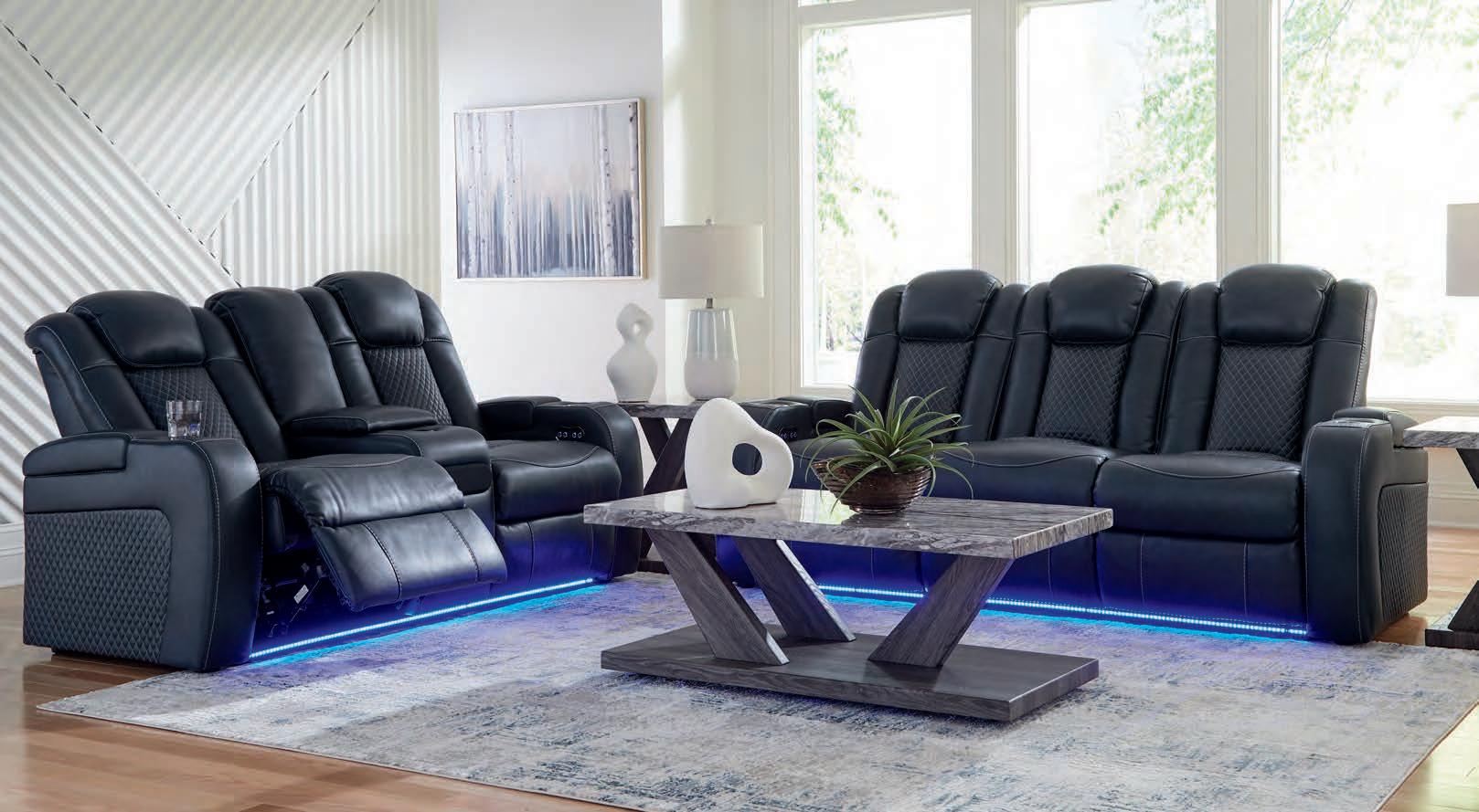 The Loveseat features a Center Console with 2 cup holders, USB charging and hidden storage