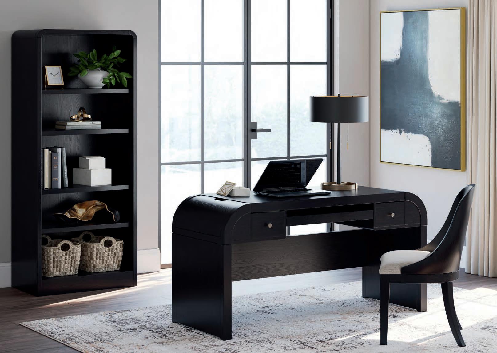 Stylish modern drawer pulls and metal window sash details are finished in a matte black accent color