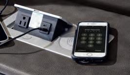 The Sofa features a Drop-Down Table with 2 cup holders, 110V power supply, USB charging and wireless charging