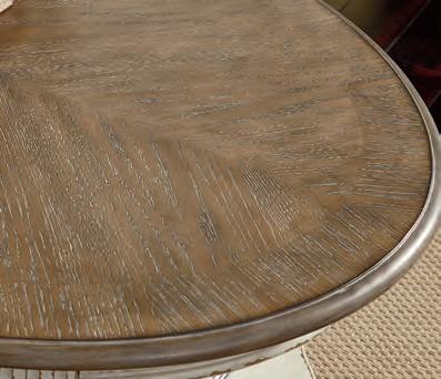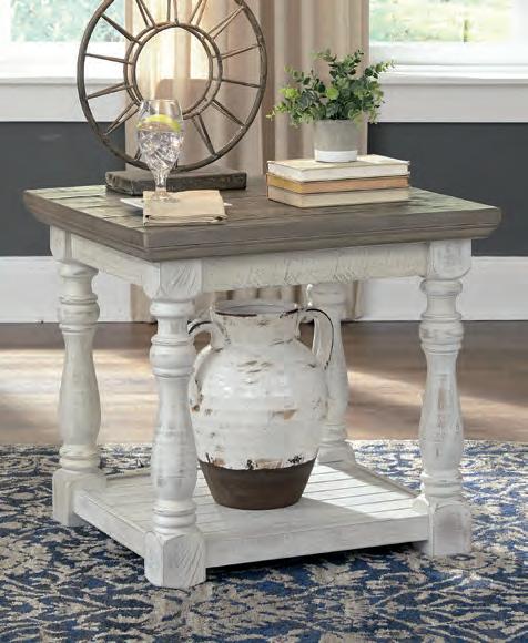 Two tone finish with distressed weathered gray table tops set on distressed vintage white bases