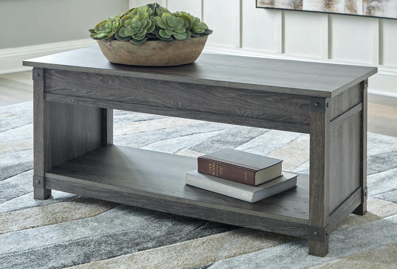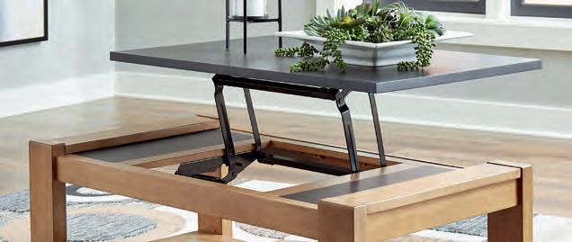 Lift-Top Table top features a lift mechanism that extends the top for convenient work or dining space