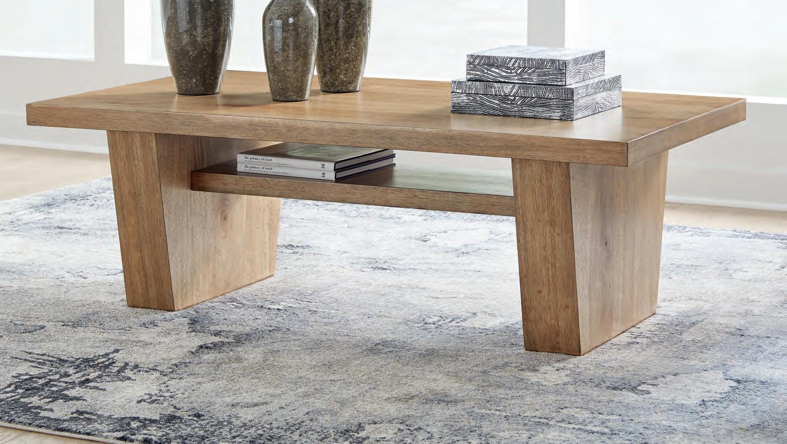 Cocktail Table (-1) features a thick solid wood edge with softly rounded corners for a casual appeal