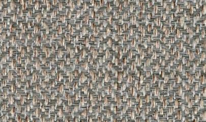 Upholstered a light gray flat woven polyester fabric that is heavily textured with lighter flax peeking through