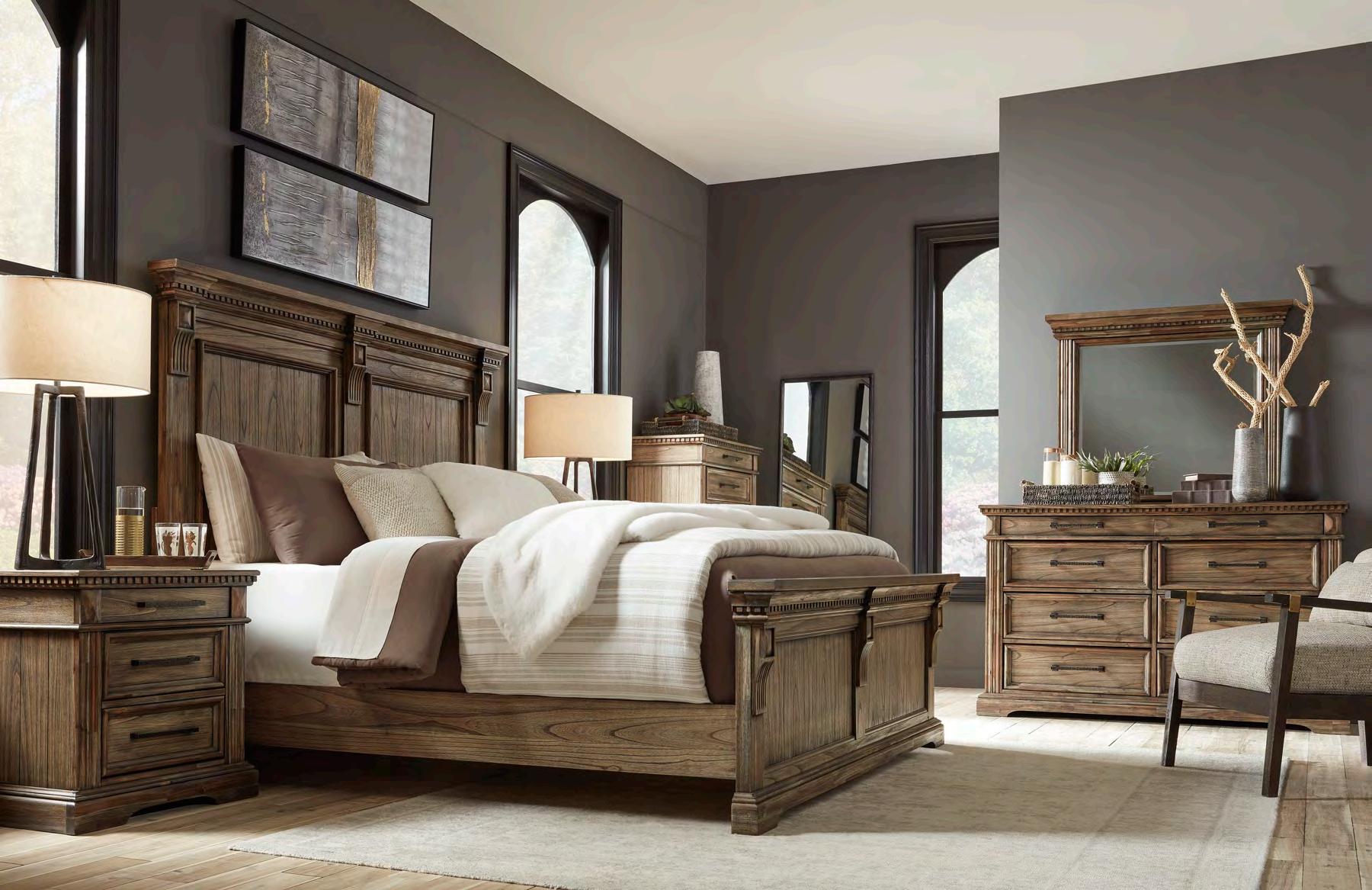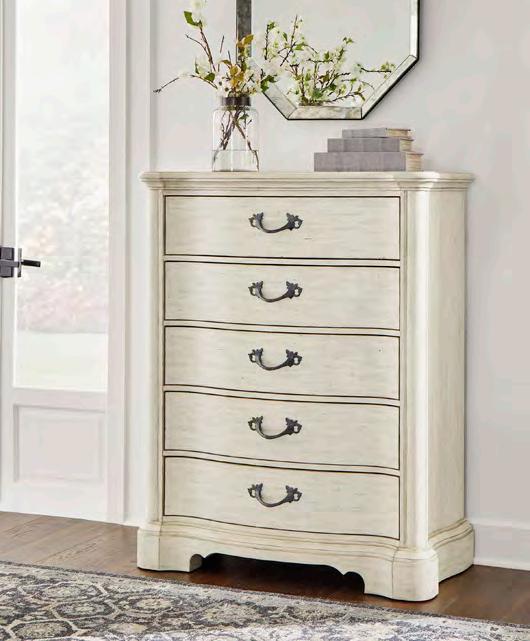 Craft a traditional-inspired haven from today’s world. The Markenburg bedroom collection is draped in a dreamy finish that enhances the wood’s natural beauty. Stylized corbels, fluted details and robust breakfront crown molding trim present picturesque finishing touches.