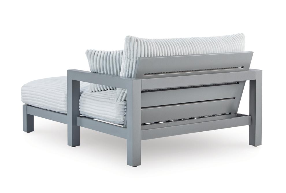 Prepare to rethink everything you thought you knew about outdoor furniture. This isn’t your average chaise lounge; it’s a statement piece designed for the outdoors. Enjoy sprawling, sink-in comfort with room for two—or even three! The cleanable, fade-resistant Nuvella® fabric offers a sophisticated corded look, enveloping you in plush luxury. With its sleek aluminum frame and strikingly big presence, this showstopper is built to withstand the elements in style. Assembly required.