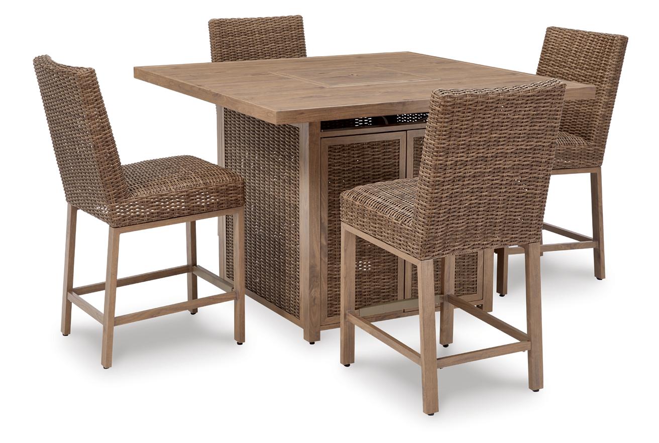 What if the next great story began in nature, right in your own yard? The Cliff Trails fire pit table features a stylish aluminum structure that beautifully mimics natural wood, providing both elegance and durability. With the press of a button, you can ignite a welcoming flame, creating a warm ambiance. Comfort is taken to the next level with foam cushioning cleverly placed under the seats and back, eliminating the need for extra cushions. A protective cover is also included for added convenience. Gather around the Cliff Trails fire pit table and kindle your tech-free conversations. Some assembly required.