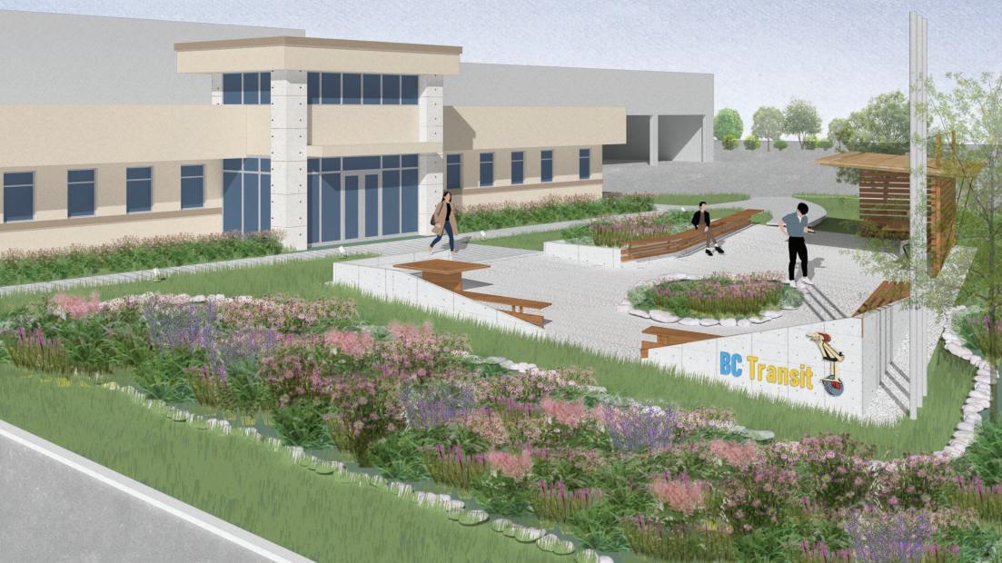 The landscape improvement was initiated by BC Transit as part of a more comprehensive refresh of its offices. Recently BC Transit received grant funding to update the facade of its main Vestal building and begin procurement of an electric bus fleet. Seizing this opportunity, BC Transit seeks to improve its outdoor space and consider a new landscape design that helps illustrate its community goals of environmental sustainability, low carbon, and being a positive force for change.