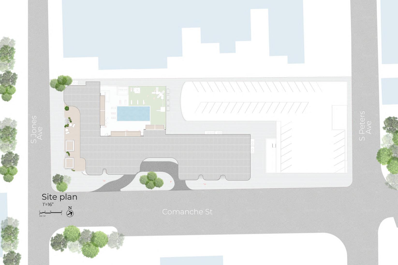 In this project, I was tasked with developing a low-income infill housing solution in West Oklahoma City. My design proposal specifically addresses the significant challenge of insufficient sunlight in the area. To maximize natural light, I incorporated two bars with a 14-foot-wide courtyard between them, allowing sunlight to penetrate both sides of the buildings. The strategic use of glass as the primary facade material further enhances the access to natural sunlight throughout the day.