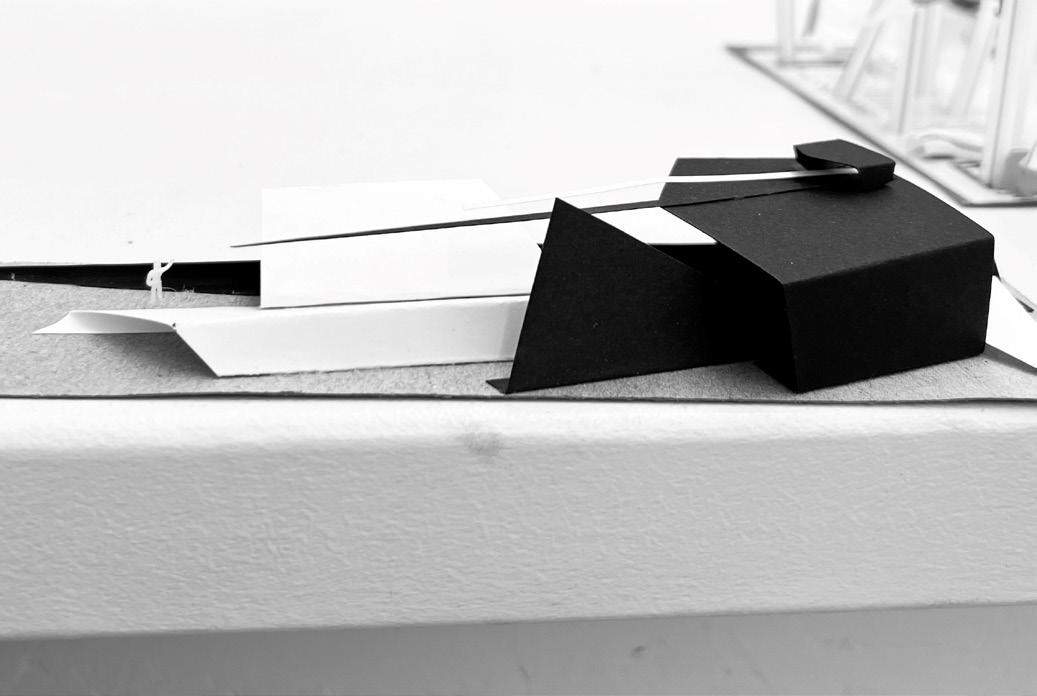 Designed a building that visually alludes to the fluidity and versatility of music that will be the incorporating the space. Through alternating waved, metal paneling, create rippling allusion of a wave that opens up to reveal the 2 main mezzanine lobby spaces for the theater.