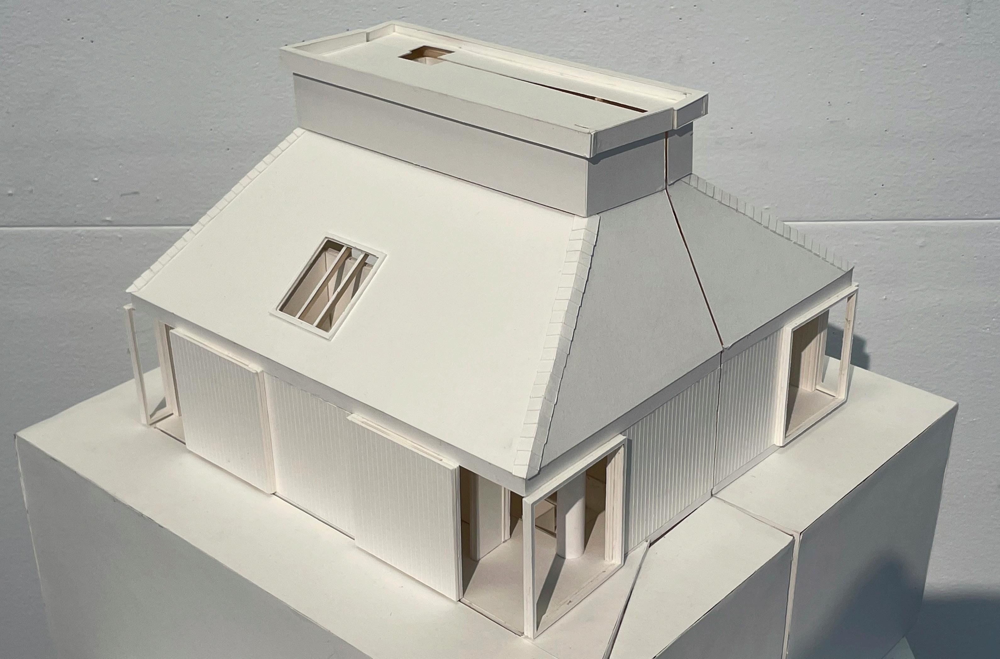 Beginning with a series of iterative models led to a desire to find a way to take all of the concepts represented in the different models and represent them in a single, larger, final model. Some of these concepts included: the use of light to shape space, the use of a removeable envelope to transform from confining space to expanding space, solids (A.K.A rooms) connected by voids (aka circulation space), and many other ideas.