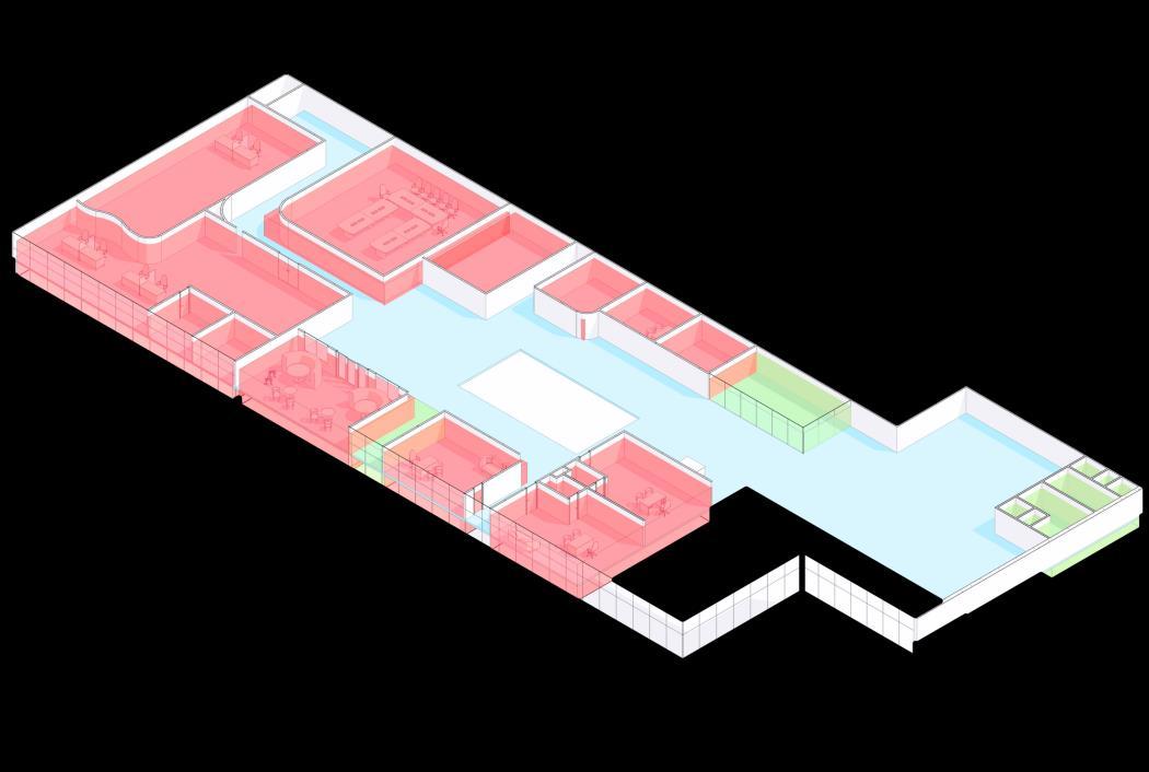 OVERALL, THE FLOOR PLAN OF THIS CORPORATE OFFICE WITH GEOMETRY AS A