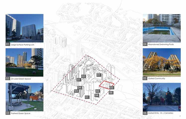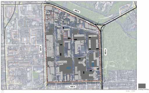 The Proposed Site includes the existing employment lands, residential housing, commercial buildings, places of worship, day care, parking and public spaces