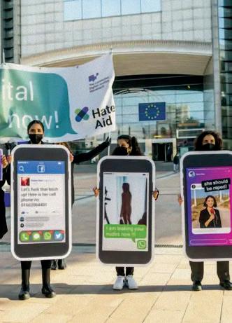 full support ranging from fnancial to media throughout the fght. Her HateAid so far has counseled 5,600 victims and brought over 300 precedent-seeking cases. In 2024, for example, one case caused the court to rule that only the platform (here Facebook) is in a position to spot and take down a false, harmful meme and that it is responsible to protect users and must act.