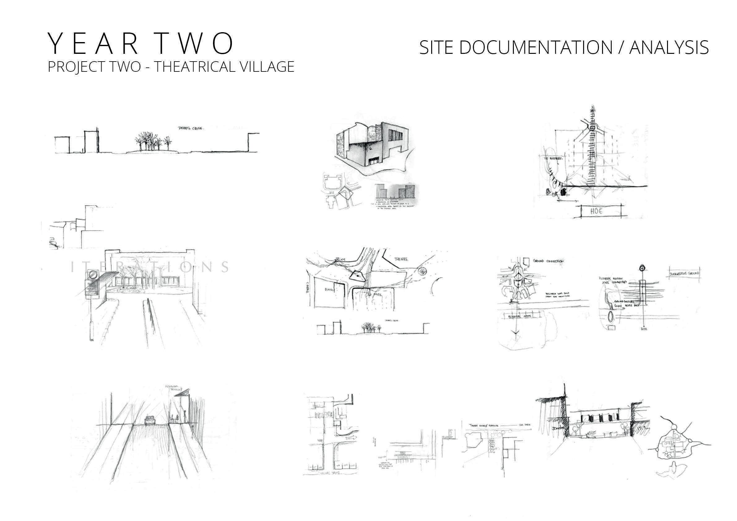 The design progressed through a series of sketches that attempt to imagine the place with a cohesive volume and aesthetics as the site is a theatrical village, which is an attraction to local and regional enthusiasts.