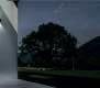 A shot of the building entrance and its surrounding context. The exterior is a mixture of limestone, aluminum and currigated metal.