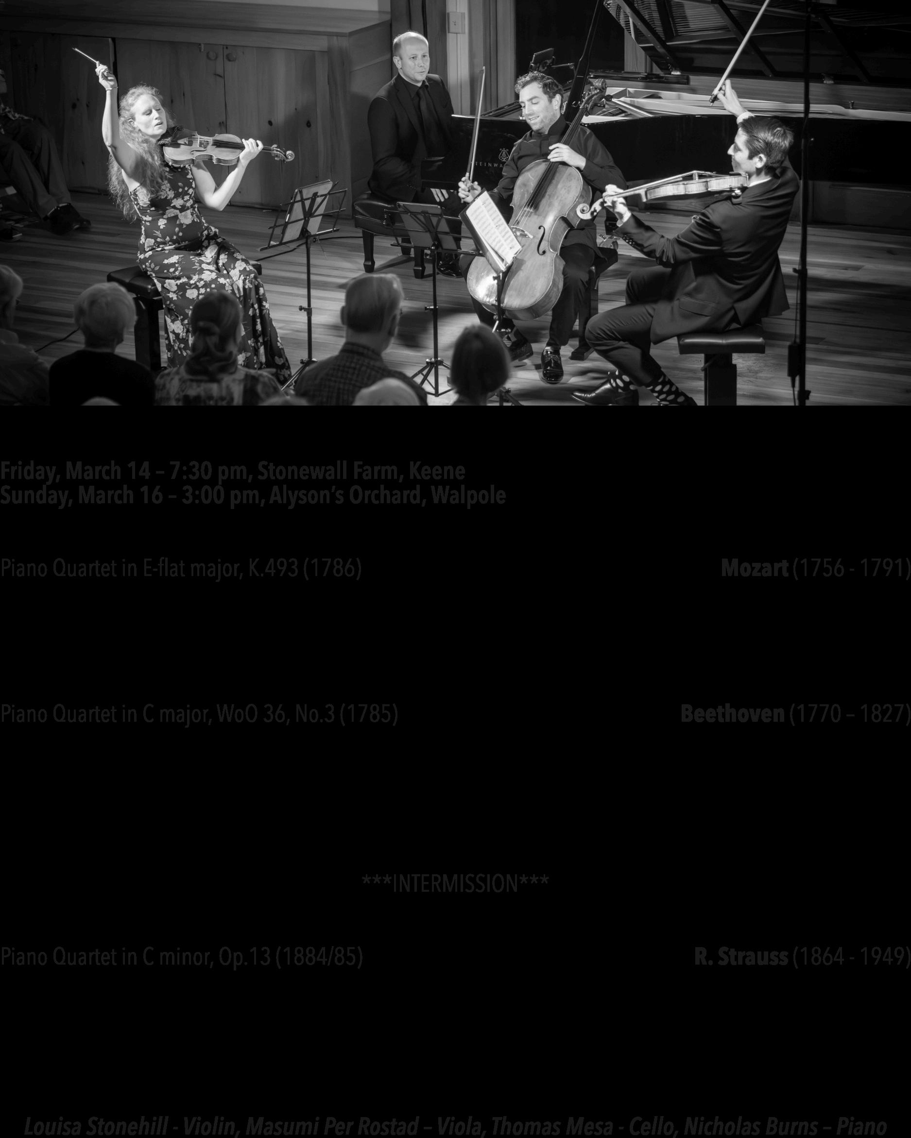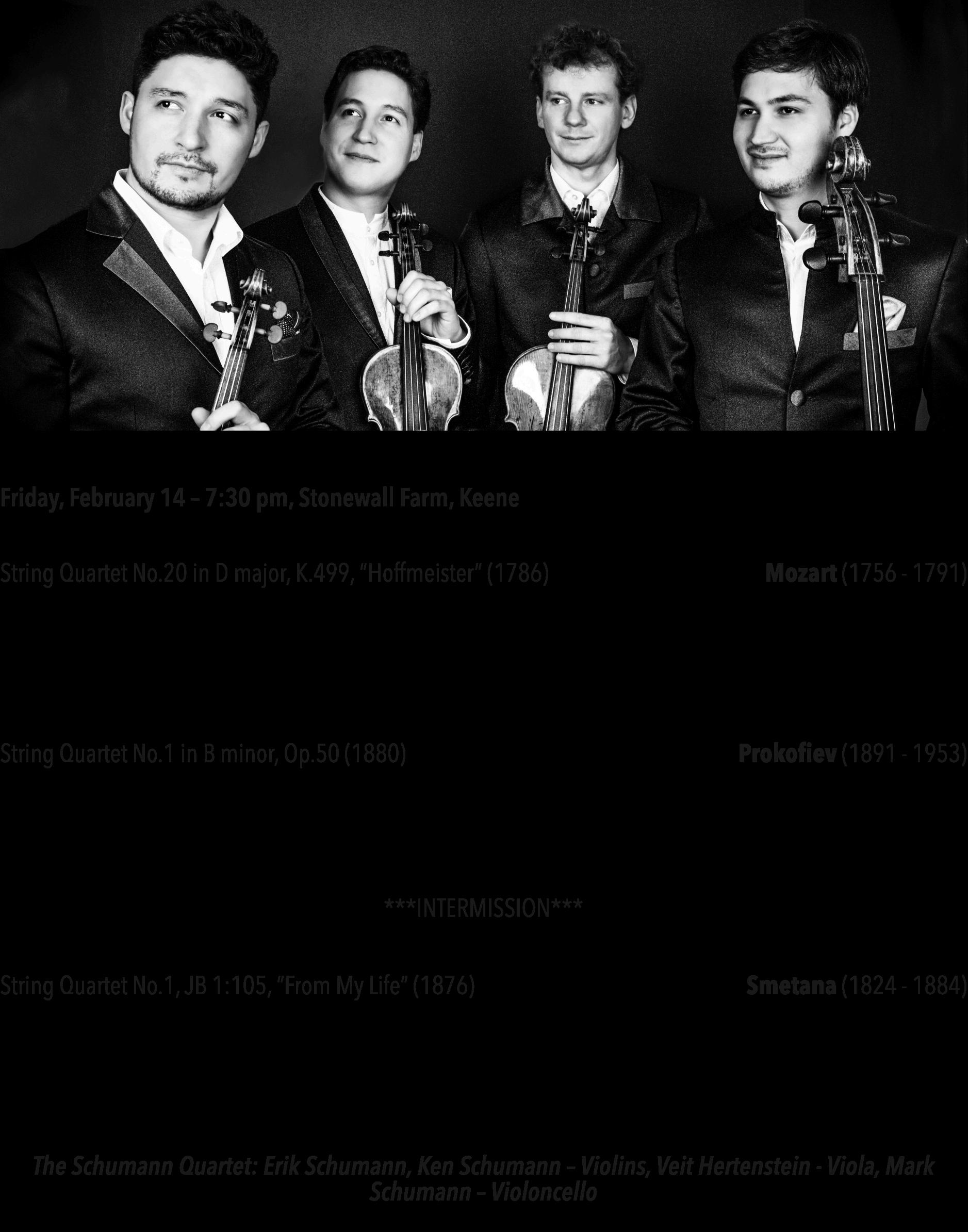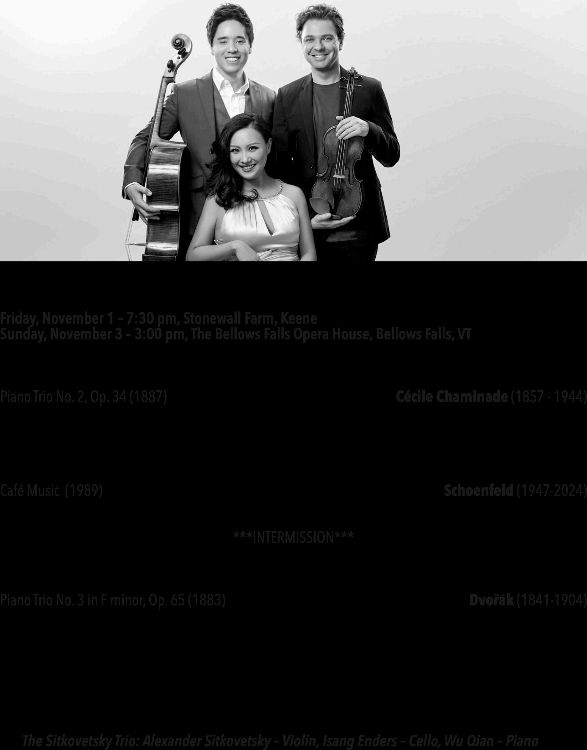 Welcome to Ashuelot Concerts’ third International Concert Series. We are honored to have you with us to experience the magic of live chamber music together. If this is your first time at one of our events, you are especially welcome. We hope that after the performance, you will leave sharing our passion for the incredible music featured in this year’s program.