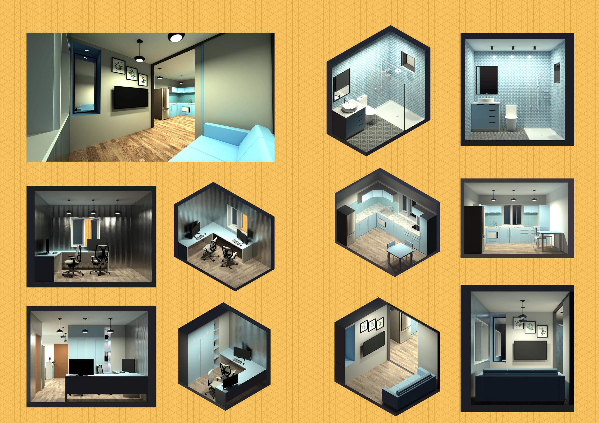 In the studio apartment interior project, envision a harmonious blend of functionality and style. With a focus on maximizing space and natural light, the design aims to create a cozy yet modern ambiance. Expect innovative storage solutions and versatile furniture arrangements, tailored to suit contemporary living needs.