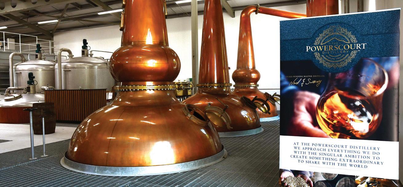 Powerscourt Distillery sits in the old mill house on the grounds of Powerscourt Estate. The brainchild of Gerry Ginty and Ashely Gardiner, the distillery boasts three pot stills, six separate tasting rooms, a gift shop, a cafe, a screening room and adjoining maturation facilities.