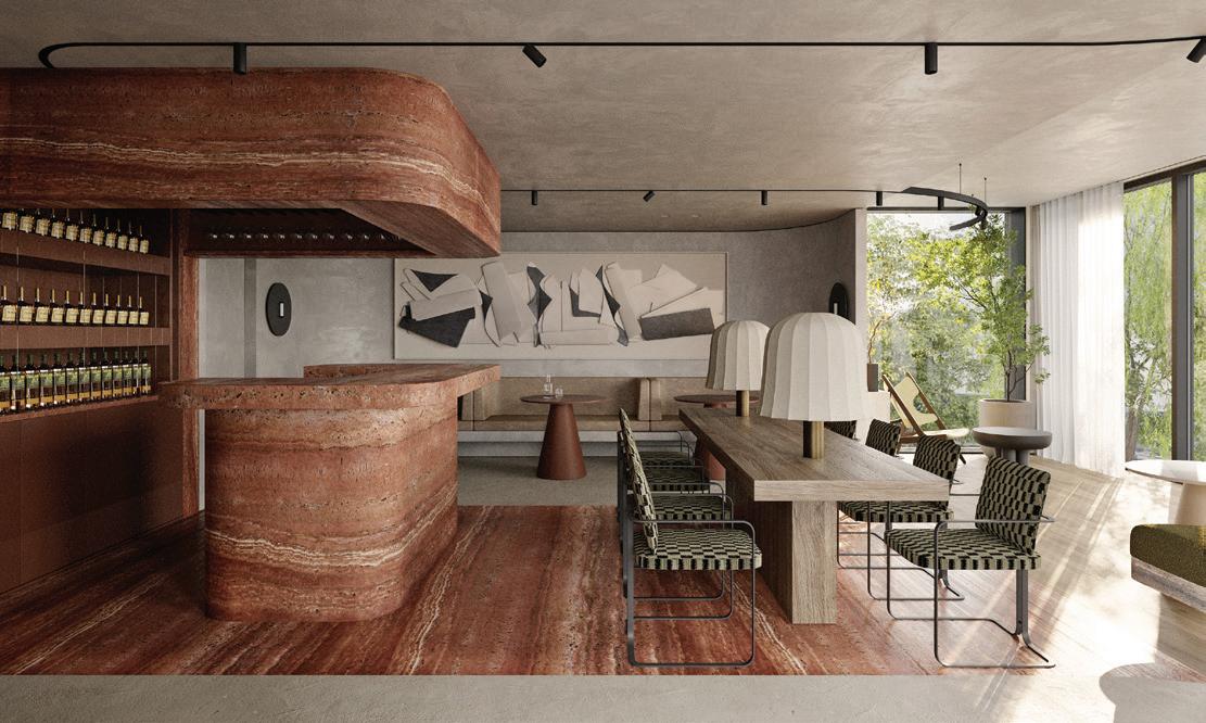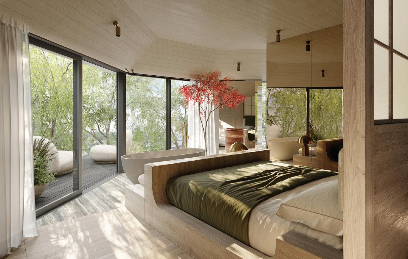 end furnishings and private terraces. Right in the middle, between the Woodland and River Suites, is a new Clubhouse which will serve as a gathering spot for guests offering food and drinks.