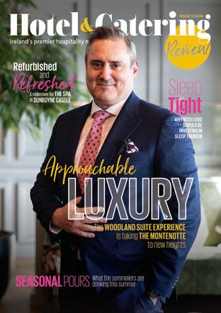 The Woodland Suite Experience at The Montenotte is due to open its doors to guests on August 1st. It’s a big step for the hotel and one that will solidify its position as one of the country’s top urban resorts. The past few years have seen big changes at the Cork hotel; in 2021 the award-winning Glasshouse rooftop bar and terrace opened, along with private guest terraces. Large banqueting suites were swapped for a new cinema and in 2023, a new salt room was added to the hotel’s spa. The Woodland Suite Experience will, says GM Frits Potgieter, reposition The Montenotte at the higher end of the leisure market. For more on The Montenotte’s new offering and future expansion plans, turn to page 14. Spa Manager Lisa Devlin’s ambition is to create a spa at Dunboyne Castle that’s the very best in the business. An extensive refurbishment and a totally transformed thermal suite is helping to make that ambition a reality. Phase 2 of the refurb has kicked off and when complete, the Spa will boast a total of 17 treatment rooms. The new-look Spa is the ‘jewel in the crown’ of the hotel, says General Manager Elisabet Diaz Berzosa and is already driving a higher number of leisure stays at the Meath hotel. For more on the new spa, turn to page 18. Elsewhere in this issue, sommeliers give their recommendations for the best wines to enjoy over the summer months. In our ‘Talking To’ feature, JUSTTIP founder James Fahy talks about setting up a successful business at just 19 years of age and his aim of making a difference in people’s lives. On page 22, Dr Donagh Davern discusses the potential that sleep tourism holds for hotels looking to differentiate themselves. Sleep Tourism refers to guests that are looking for accommodation that focuses on the area of sleep quality and wellness, whether that’s a “pillow menu”, a white noise machine or a meditation session before bed.