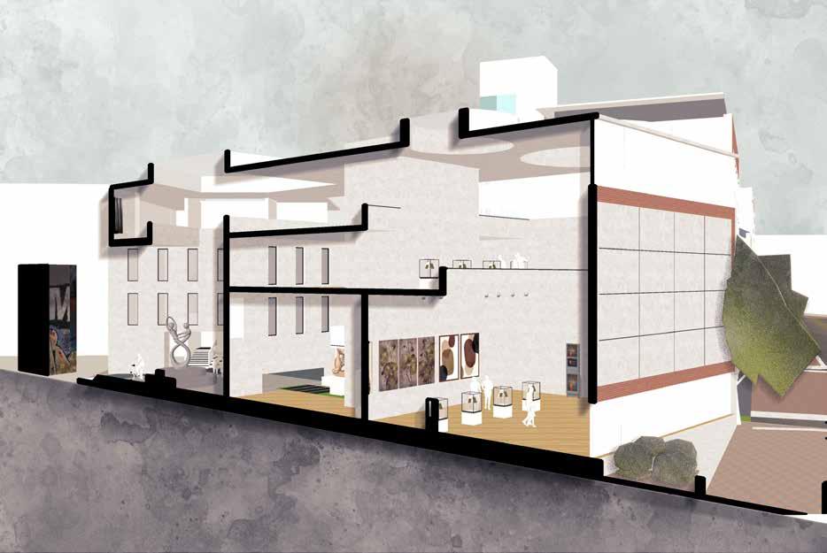 the third floor, these exhibition blocks merge, facilitating effortless movement and exploration between them, enhancing the overall fluidity and connectivity of the space. A X O N O M E T R I C S E C T I O N A L V I E W