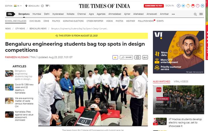 Our faculty advisor, Dr Ravindra S Kulkarni expresses on this achievement - "I am really happy that Team Ashwa Mobility has won three awardsbesidesgetting4thoverallpositionatthe nationaleventinCoimbatore.Theachievementis commendable since it is achieved during these uncertainties and troubled times of the pandemic Many thanks to the Principal, authorities, and sponsors for their kind support andencouragement"