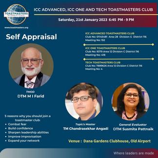 DTM M.I. Farid is the Founder President of ICC One Toastmasters Club. He joined Toastmasters in Qatar in the year 2003. He is a Distinguished Toastmaster twice over, acquiring the coveted title first in the year 2007 under the old system and then in January 2021 under the new Pathways. A qualified Chartered Accountant in Qatar since over 44 years, he is married with two daughters, a son and five grand-children. He was the Division-E Governor for the year 2007 -2008 and the District 20 Treasurer for the year 2008- 2009.