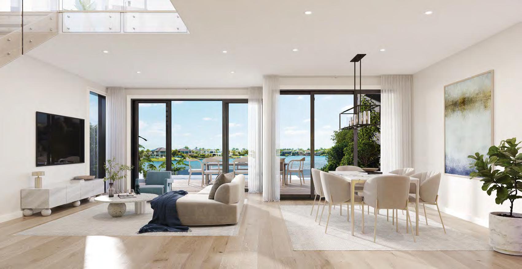 Every Lakeside villa enjoys a luxurious open plan living space that sets the scene for entertaining or relaxing with friends and family. Soaring ceilings, a floating staircase and an abundance of light stream through, while carefully placed feature windows reveal incredible wide water views that reach out across the wide waters of Lake Serenity.
