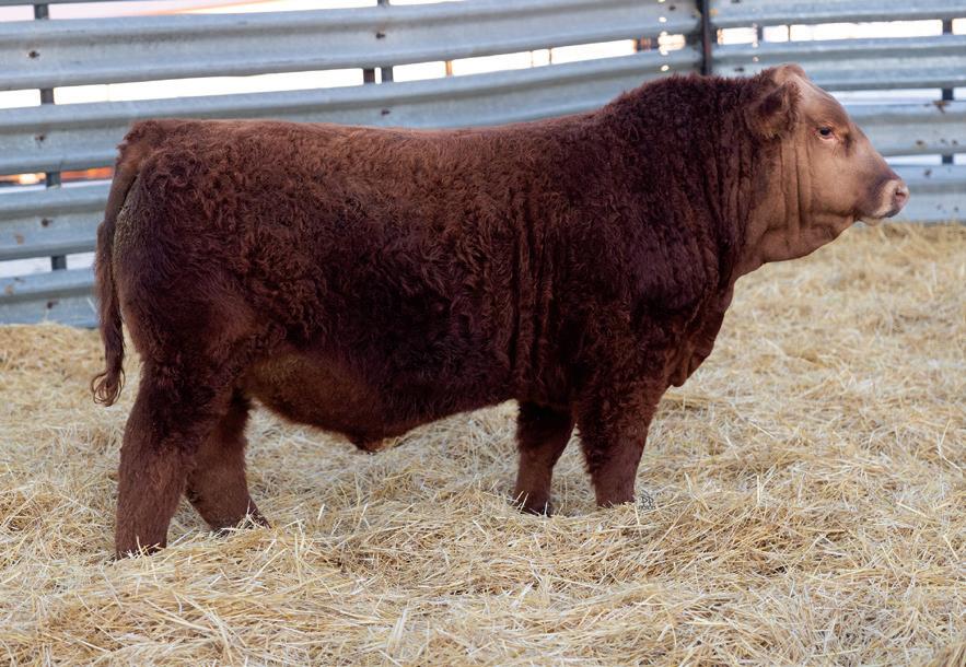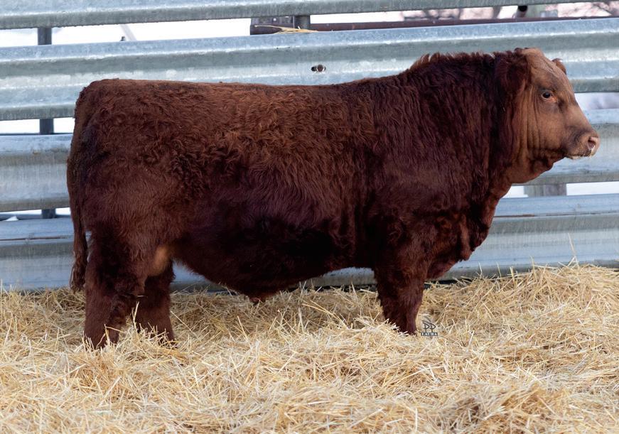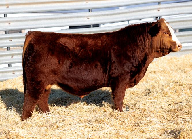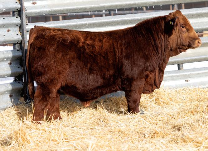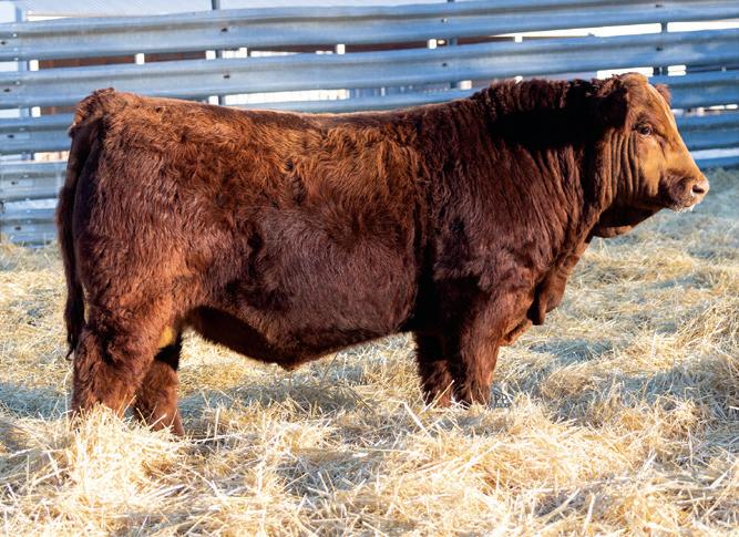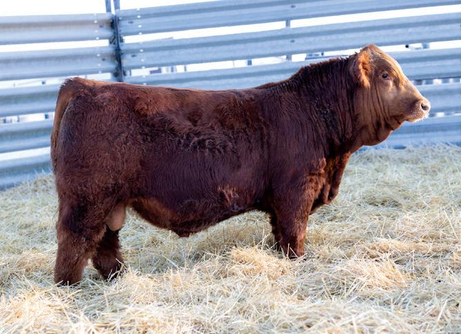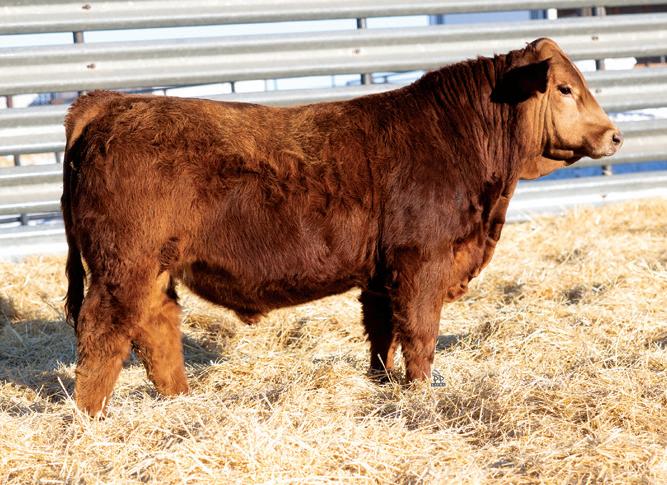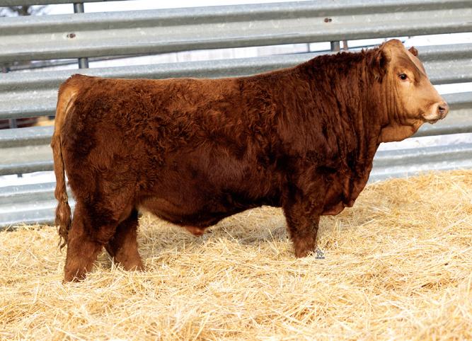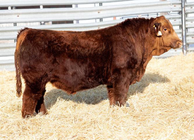 • Our lone 007 son on the red side of the offering, 007 was a high selling bull purchased from Westgold Farms in 2021