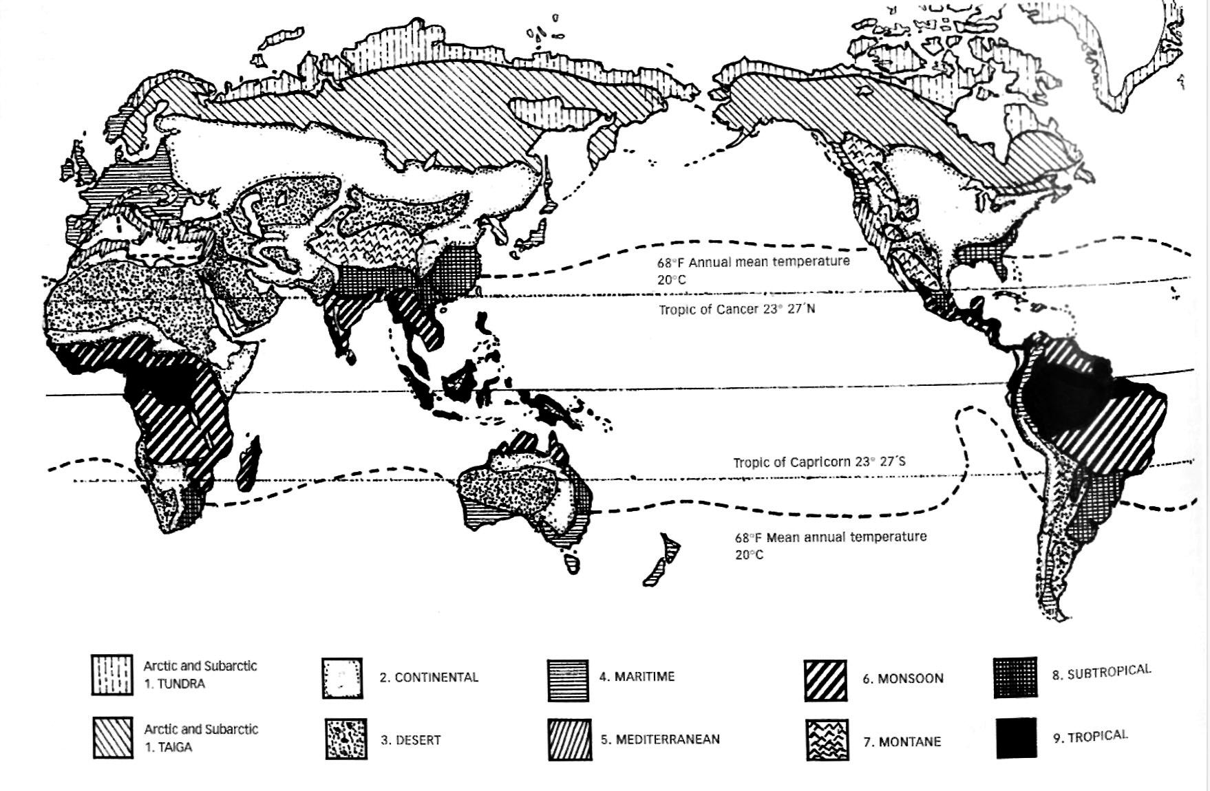Figure 3: “Nine Climatic Zones for vernacular architecture,” Paul Oliver, Encyclopedia of Vernacular Architecture of the World, 1997.