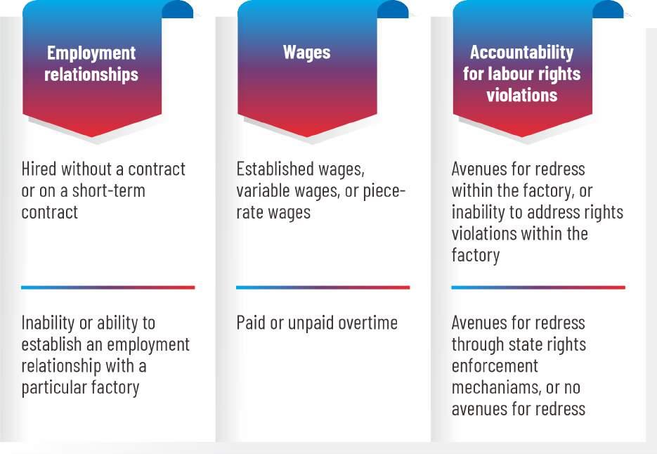 This practice of dividing workers and pitting groups against one another undermines collective action to improve working conditions for all workers on garment global supply chains.