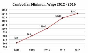 Progressive increase in Cambodian minimum wages, 2012-2016