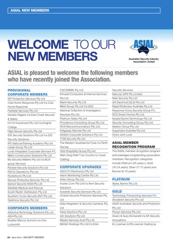 WELCOME TO OUR NEW MEMBERS ASIAL is pleased to welcome the following members who have recently joined the Association. PROVISIONAL CORPORATE MEMBERS