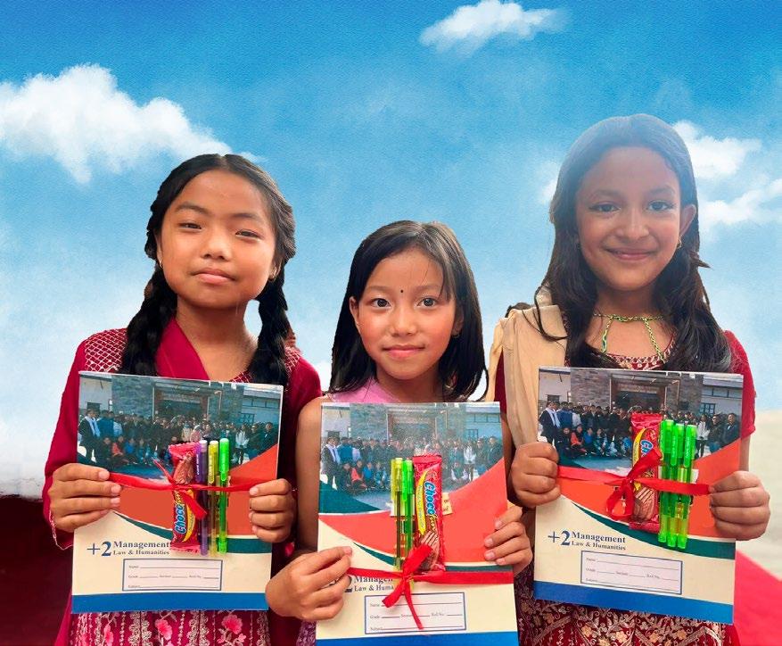 Children in Nepal with their new education kitthese kits are designed to provide basic learning tools to help children attend school regularly and participate more effectively in class