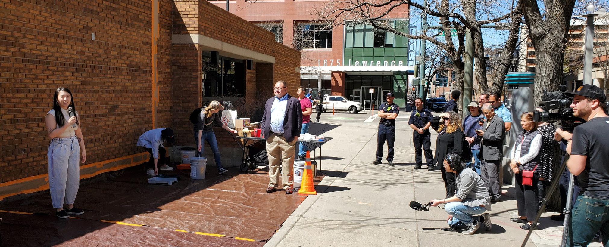 On April 2, 2023, the Denver community came together to paint the primer for the first mural dedicated to Denver’s historic Chinatown at Fire Station No. 4 at 19th and Lawrence Streets.